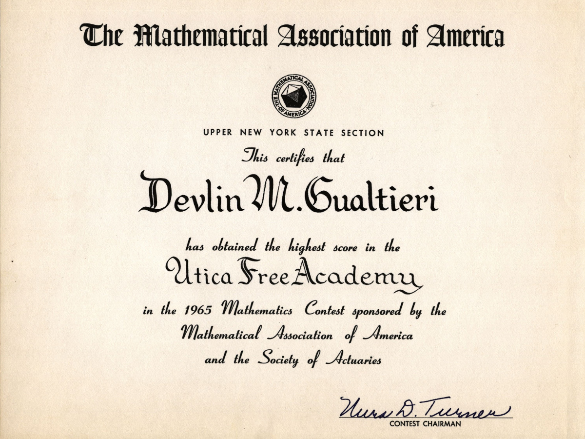I mentioned my high school interest in mathematics (see the above figure). I did pursue a career in a mathematically intensive field; but I didn't particularly care for mathematics instruction, so I never considered becoming a mathematician. In later life, I've rediscovered some interesting mathematics, and I'm happy that I had enough math education for me to do some independent study.