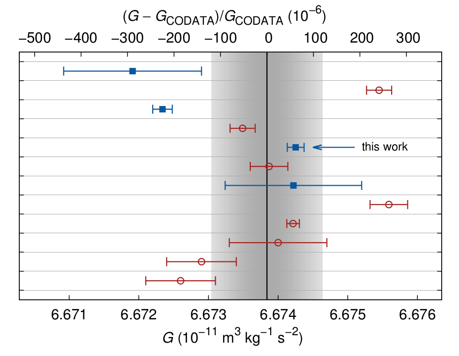 precision. There have been many attempts to improve on the Cavendish experiment, one recent example of which is given in the references.[1-2] As the figure shows, the experimental values for