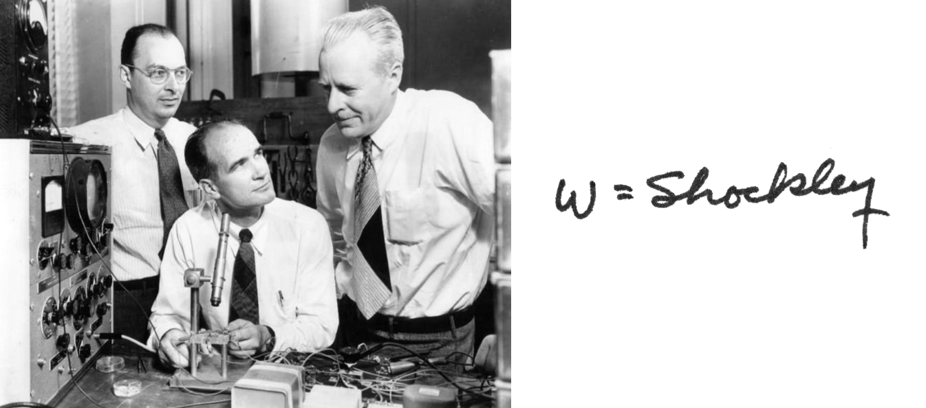 1956 Nobel Prize in Physics with Bardeen and Brattain "for their researches on semiconductors and their discovery of the transistor effect." Shockley's